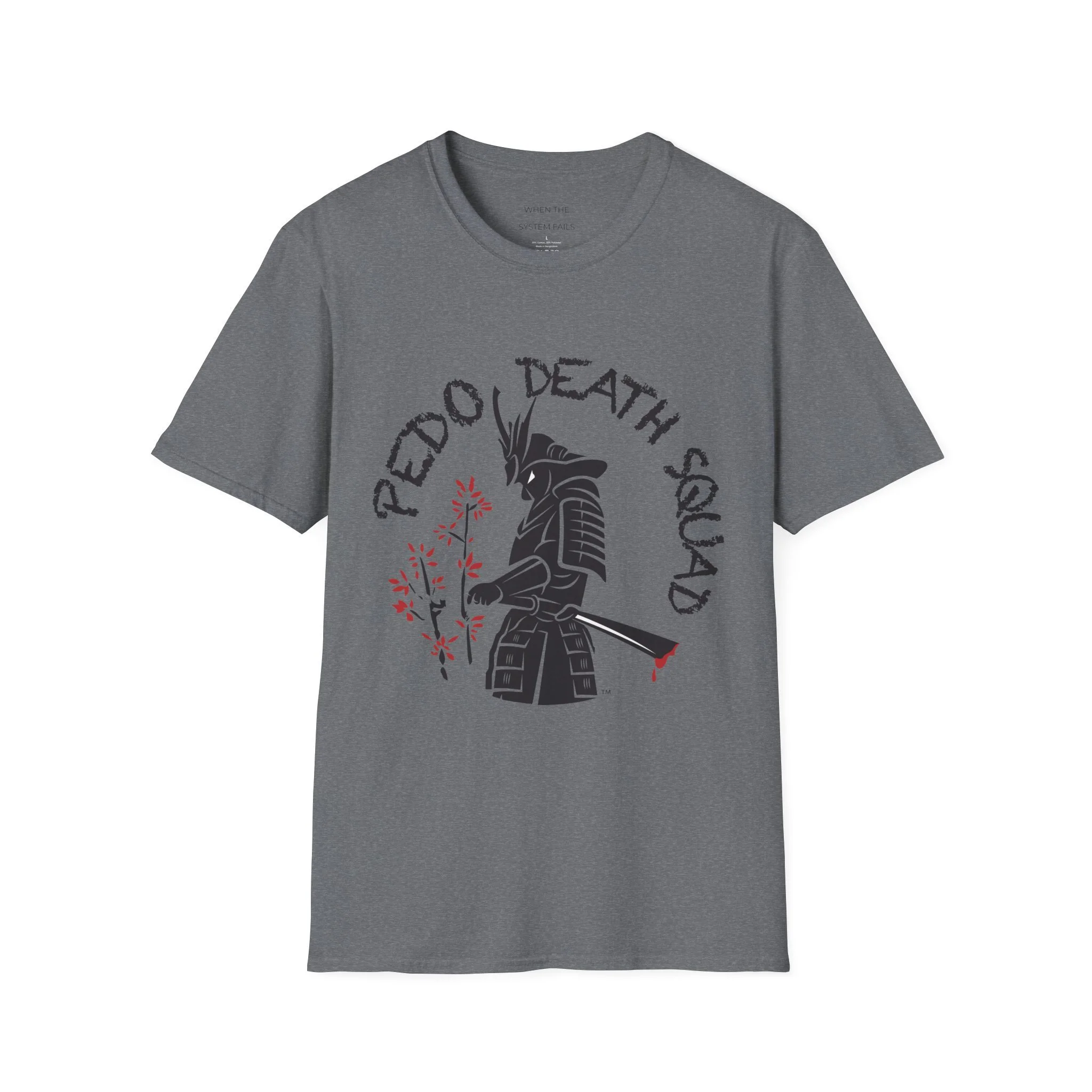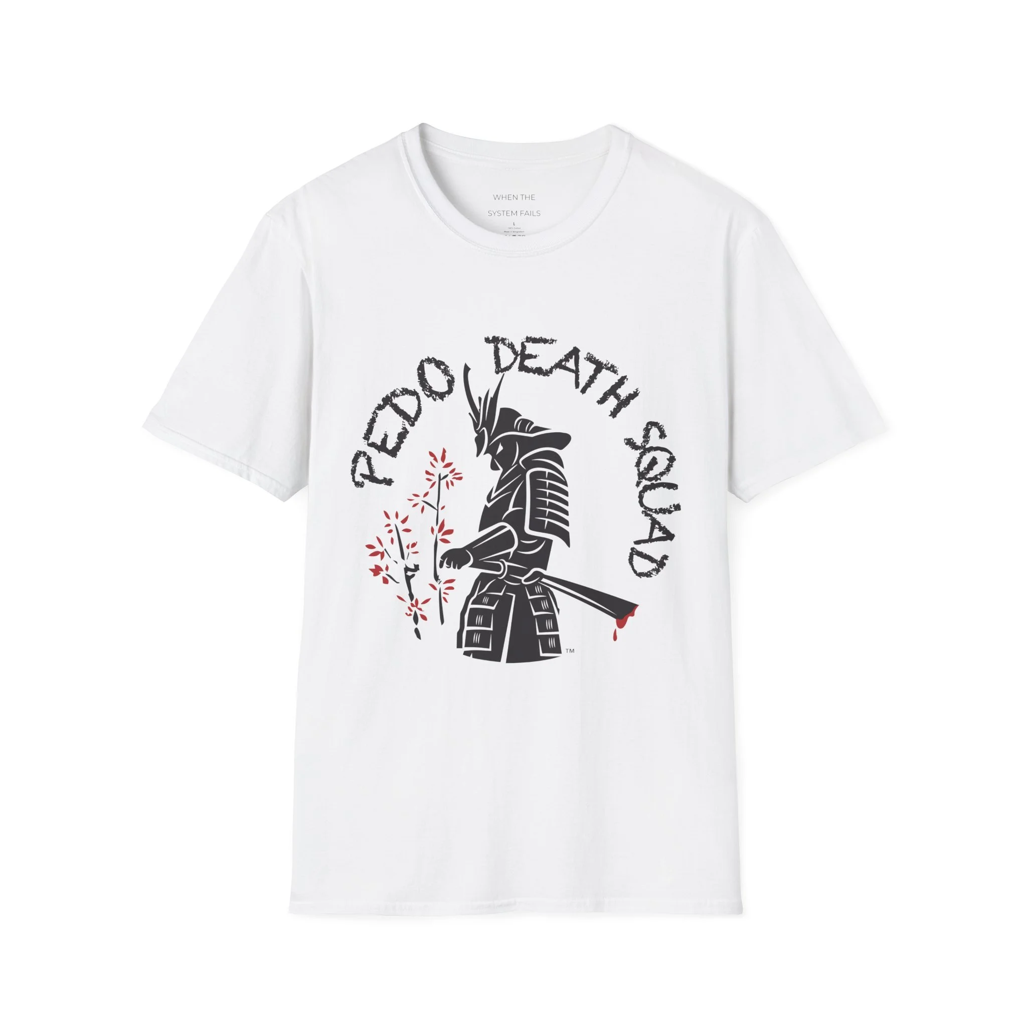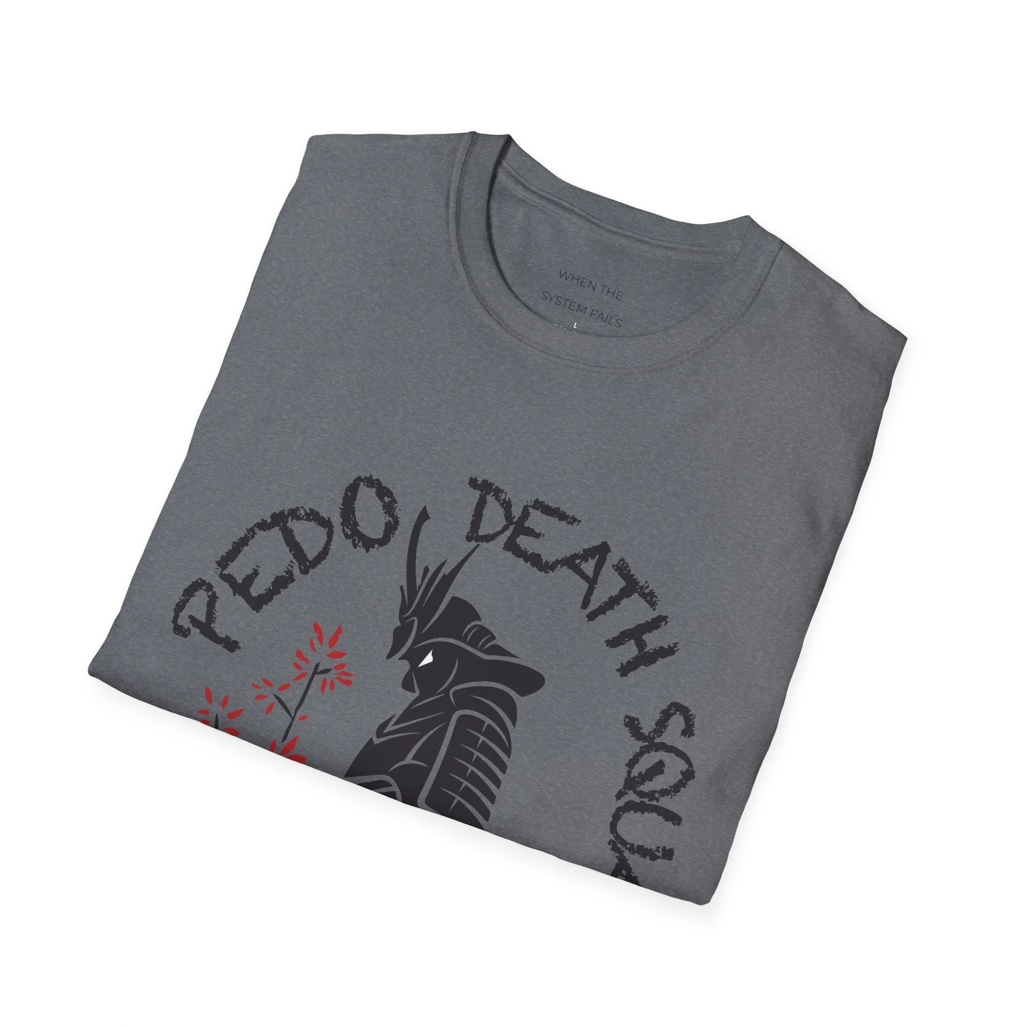 A clean, soft crewneck tee that wears in like a favorite and carries a quiet edge. The shirt features a bold, hand-drawn samurai silhouette with subtle cherry-blossom accents and distressed lettering arranged above and around the figure. The design balances stark black linework with small, intentional splashes of muted red for a look that feels both modern and slightly weathered. Lightweight ring-spun cotton and a smooth tubular knit keep the silhouette relaxed and comfortable—great for layered streetwear or standing alone as a statement piece. Wear it to shows, late-night meets, or when you want an understated nod to warrior aesthetics without shouting for attention.